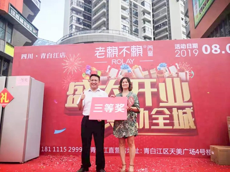 開業(yè)慶典首先舉行了隆重的剪彩儀式。賓客、代表先后上臺(tái)致辭、發(fā)言。青白江店店長剛哥對前來捧場的廣大用戶朋友們、兄弟單位表示衷心的感謝!剛哥表示:青白江店全體員工將不懈努力,全心全意為用戶服務(wù),力爭把老賴不賴打造成為當(dāng)?shù)叵M(fèi)者“信得過”的品牌門窗店。