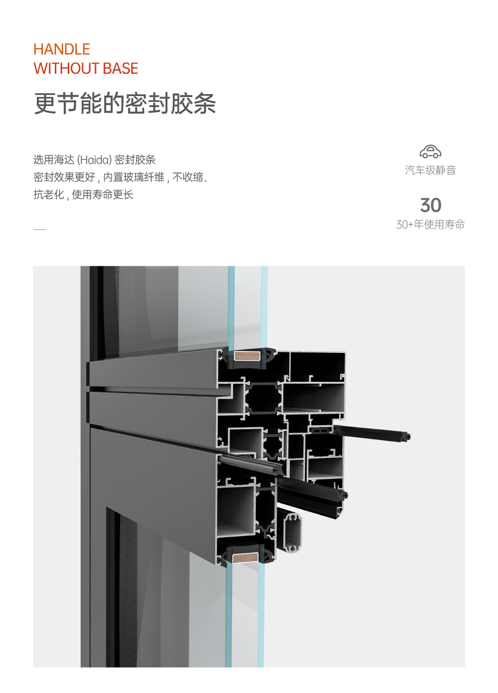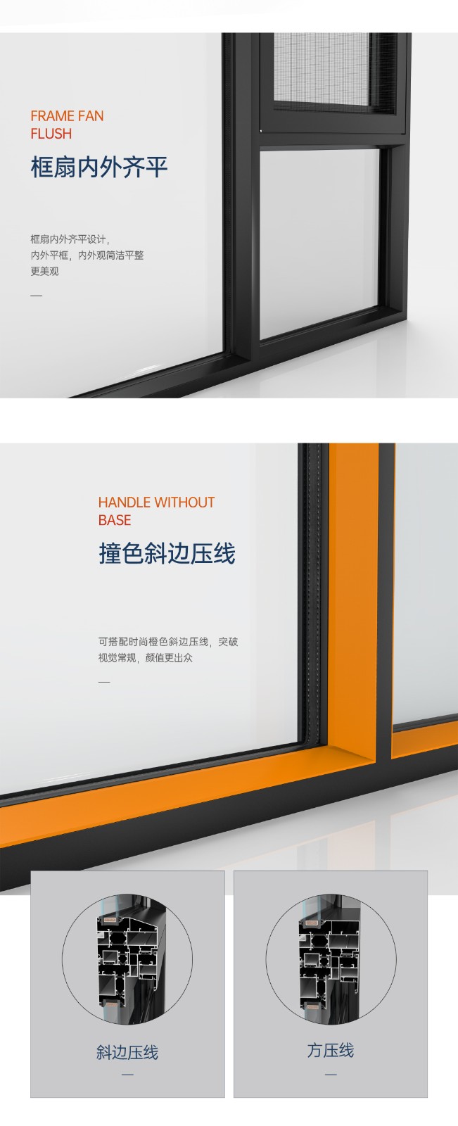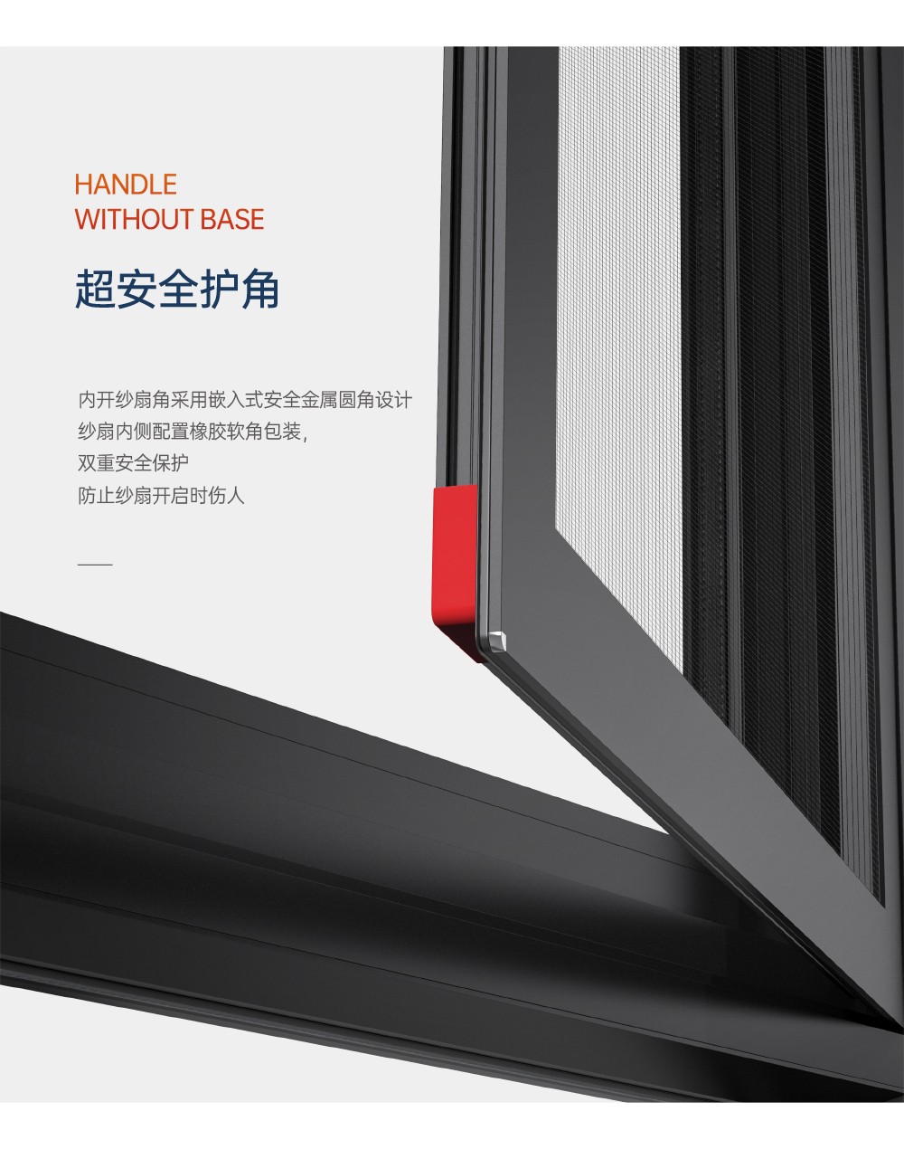 >超安全兒童防護裝置,10cm限位,安全通風 (選配); >超安全防護格,24小時安全防護 (選配); >超安全雙重護角,預防尖銳碰傷; >超安全強化鉸鏈,預防窗扇掉落造成高空危害; >銷釘注膠工藝,結構更安全牢固,防水性能更優越; >大中空鋼化玻璃,采用雙膠條減震密封設計,隔音效果更好; >汽車級密封膠條,更隔音,更耐候; >隱藏式下排水設計,防風嘯,防倒灌,顏值高; >撞色斜邊壓線,顏值更出眾。